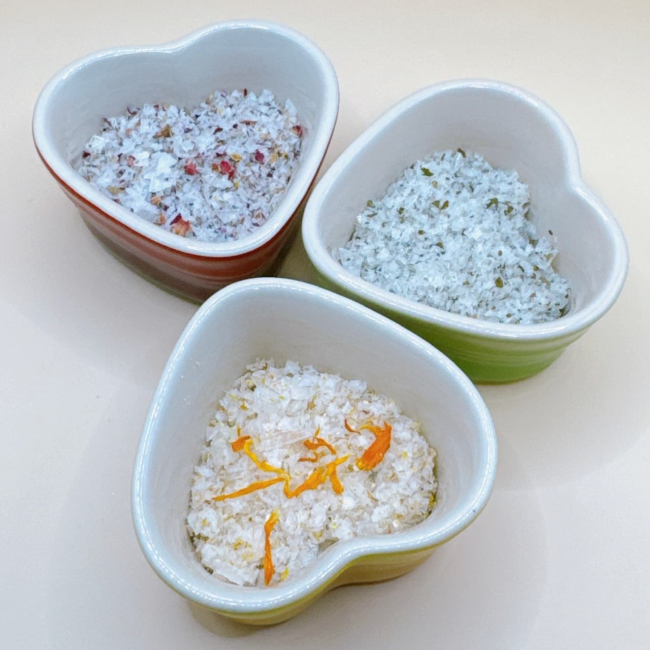 3つの花が主役のフラワーソルト。み鳥公式サイトにて好評販売中。