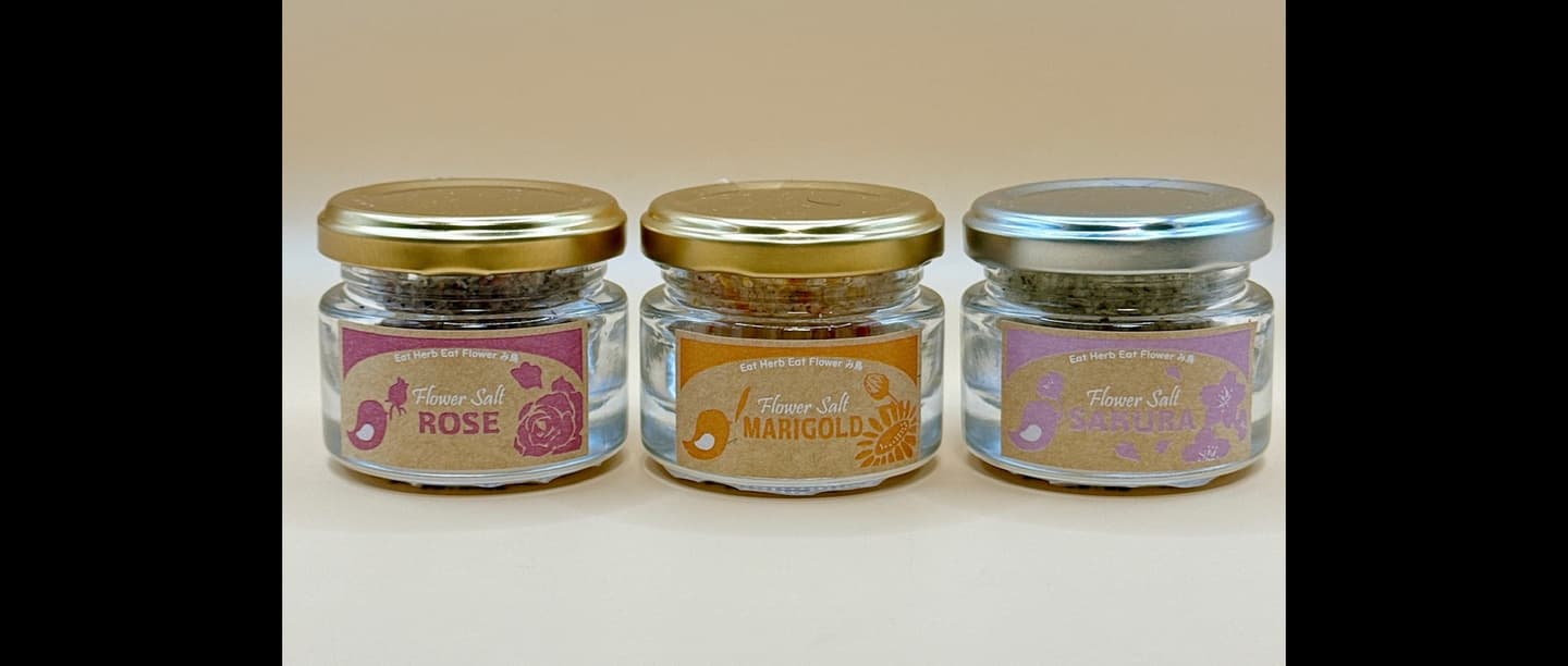 3つの花が主役のフラワーソルト。み鳥公式サイトにて好評販売中。